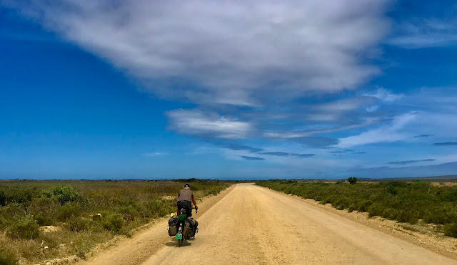 The aches and pains of age (or who knows where they come from) just little annoying discomforts in the joints or muscles while we are stationary....and when we start moving...cycling that is, they miraculously disappear: disintegrate into moving air - away they go as we are heading along the coast to the most southern point of the continent. Two oceans meet here -